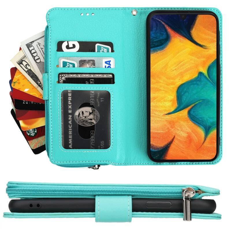 Για Samsung Galaxy A20 / A30 Microfiber φερμουάρ οριζόντια Flip δερμάτινη θήκη (πράσινο)