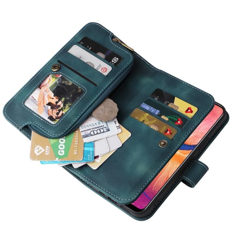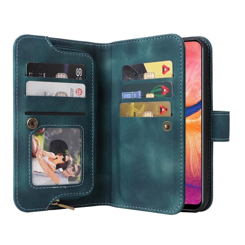 Για Samsung Galaxy A20 / A30 Πολυλειτουργική κάρτα Slot φερμουάρ πορτοφόλι δερμάτινη θήκη τηλεφώνου (μπλε)
