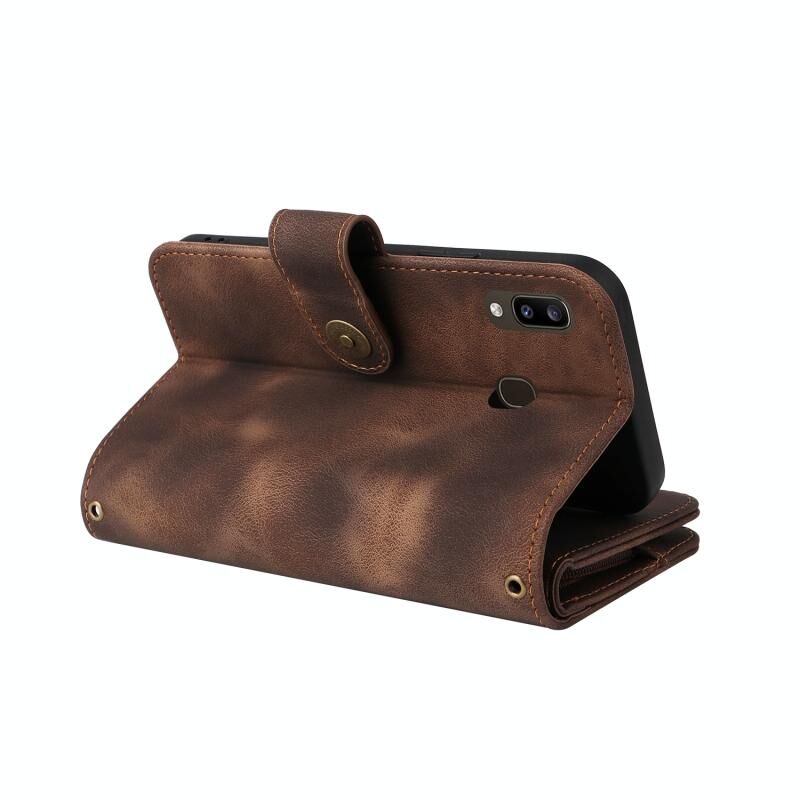 Για Samsung Galaxy A20 / A30 Πολυλειτουργική κάρτα Slot φερμουάρ πορτοφόλι δερμάτινη θήκη τηλεφώνου (Καφέ)
