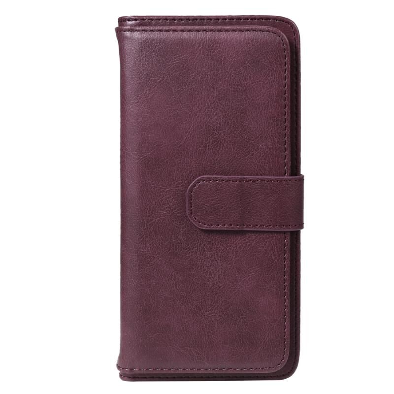 Για Samsung Galaxy A20 / A30 Πολυλειτουργική μαγνητική χάλκινη πόρπη οριζόντια Flip αμιγούς χρώματος δερμάτινη θήκη με 10 υποδοχές για κάρτες & πορτοφόλι & θήκη & κορνίζα φωτογραφιών (κόκκινο κρασί)