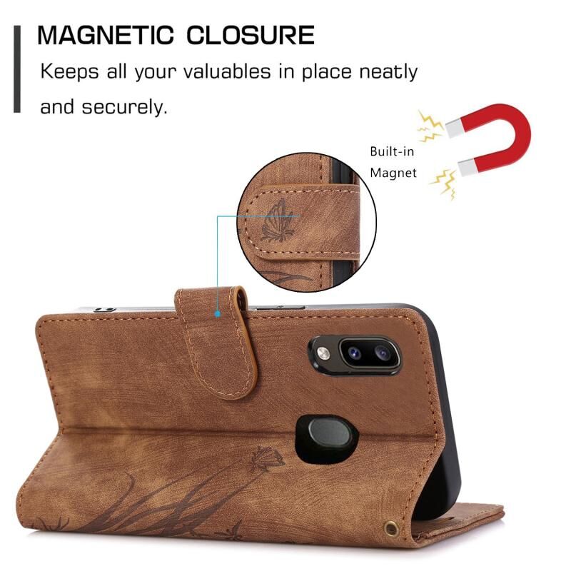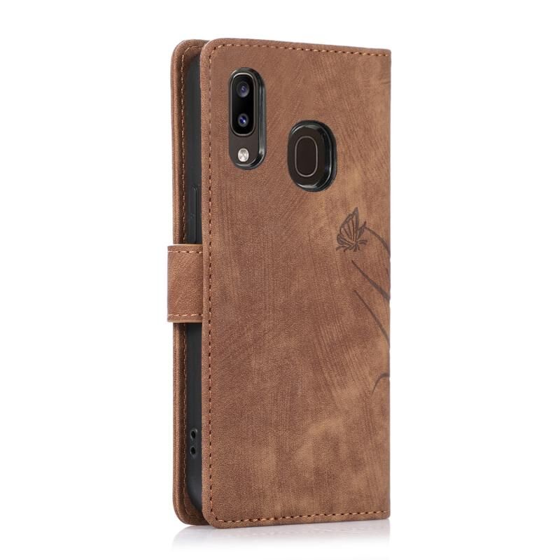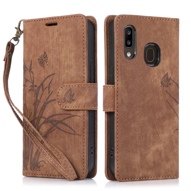 Θήκη τηλεφώνου δερμάτινη ανάγλυφη με σχέδιο ορχιδέας πεταλούδας για Samsung Galaxy A20 / A30 (Μαύρο)