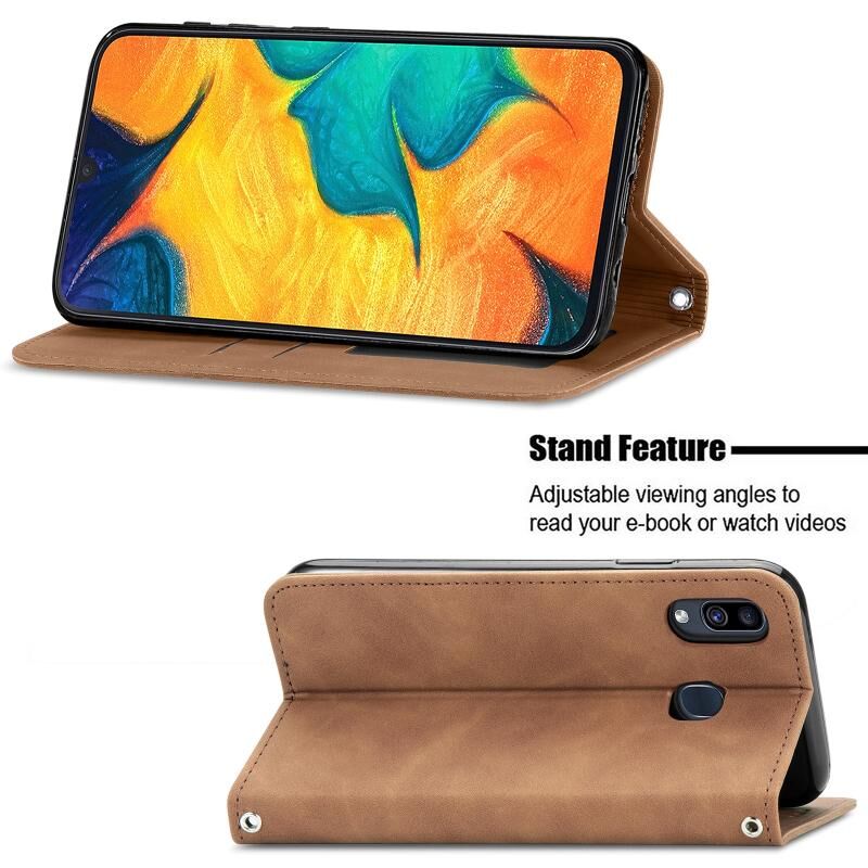 Για Samsung Galaxy A20 /A30 Retro Skin Feel Business μαγνητική οριζόντια Flip δερμάτινη θήκη με υποδοχές για κάρτες & πορτοφόλι & κορνίζα φωτογραφιών (Καφέ)