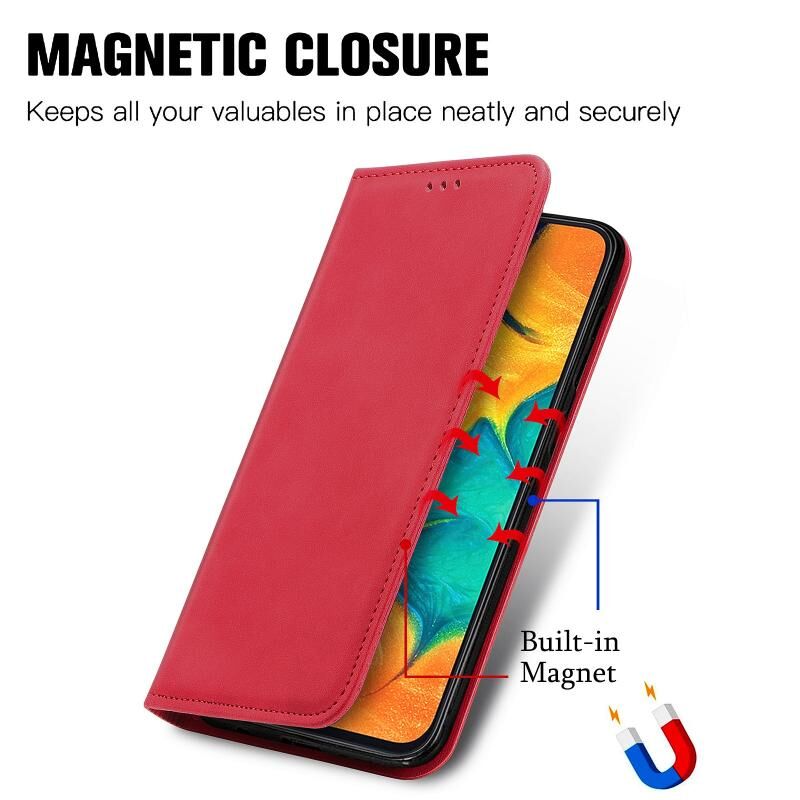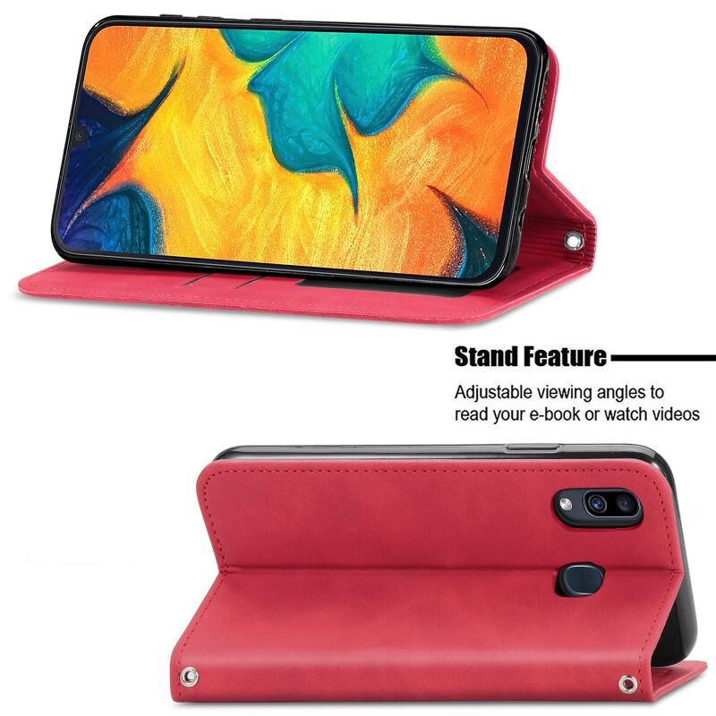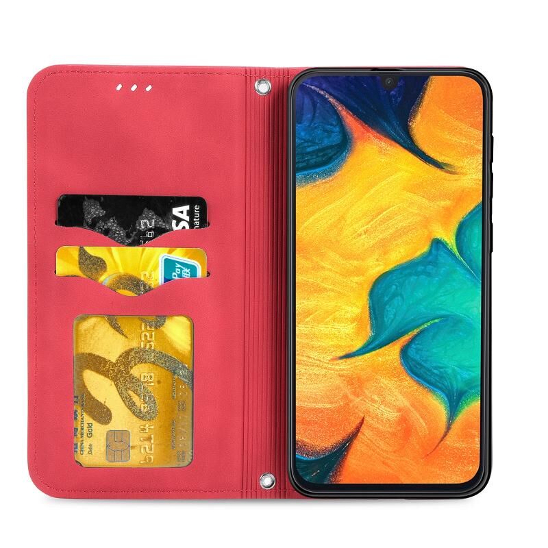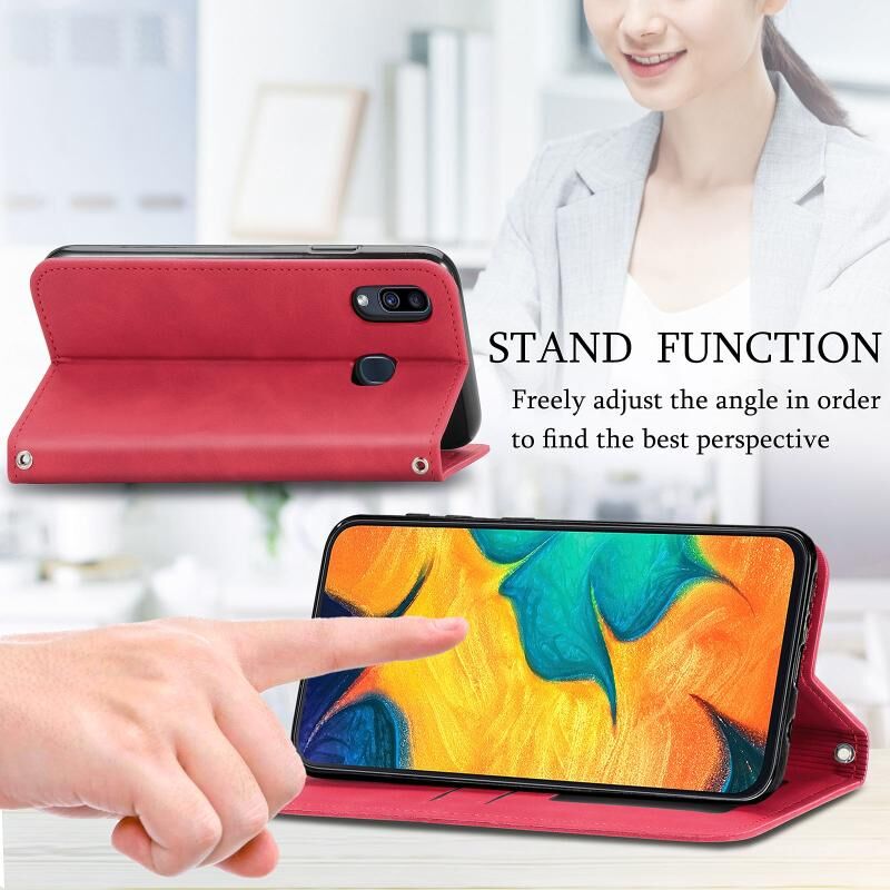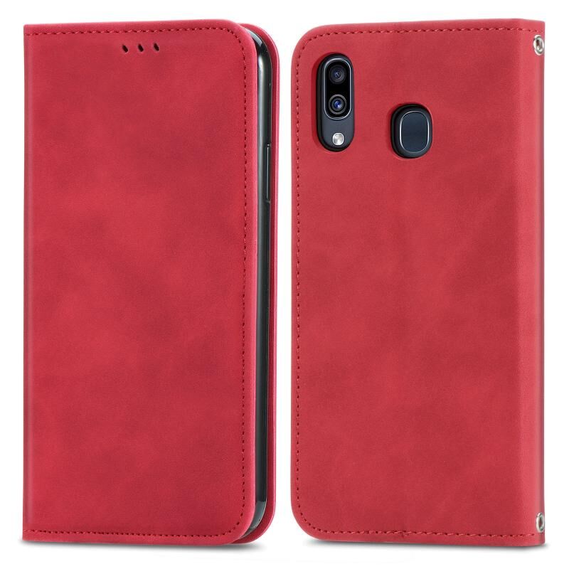 Για Samsung Galaxy A20 /A30 Retro Skin Feel Business μαγνητική οριζόντια Flip δερμάτινη θήκη με υποδοχές για κάρτες, πορτοφόλι και κορνίζα φωτογραφιών (Κόκκινο)