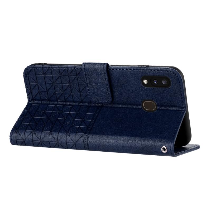 For Samsung Galaxy A20 / A30 Rhombic Texture Leather Phone Case with Lanyard(Blue)
