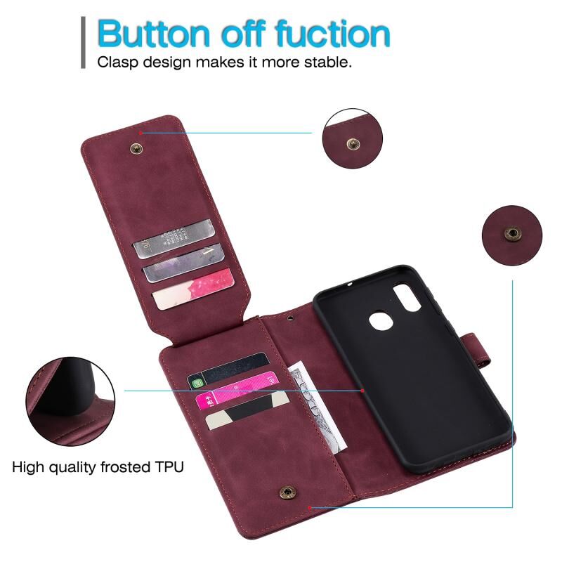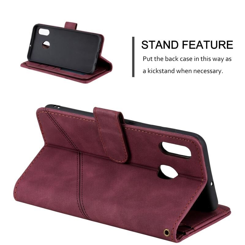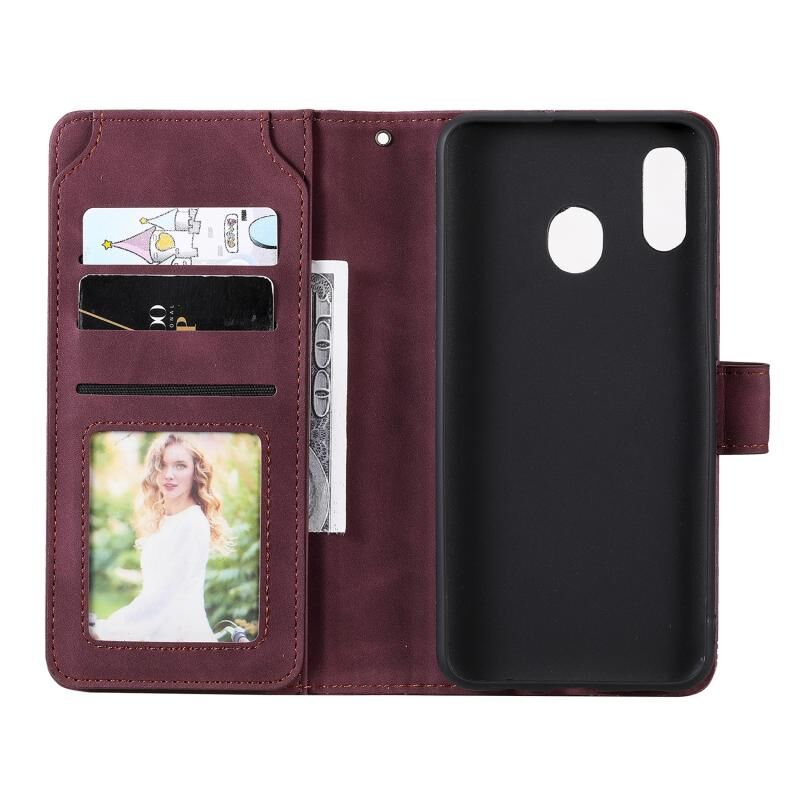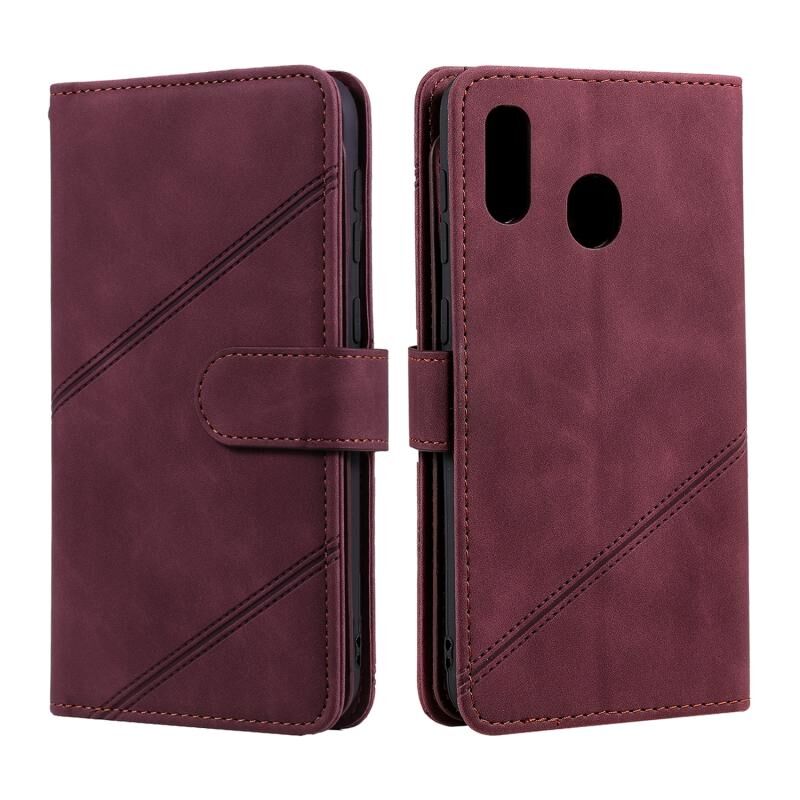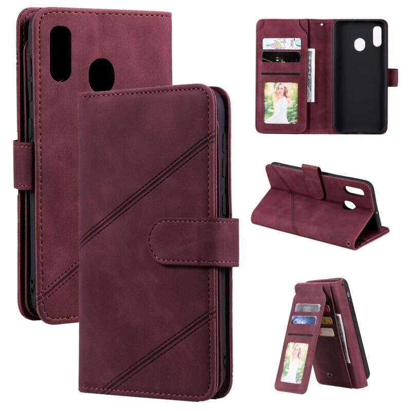 Για Samsung Galaxy A20 / A30 Skin Feel Business Οριζόντια Flip PU δερμάτινη θήκη με θήκη & υποδοχές πολλαπλών καρτών & πορτοφόλι & κορδόνι & κορνίζα & κορνίζα φωτογραφιών (κόκκινο κρασί)