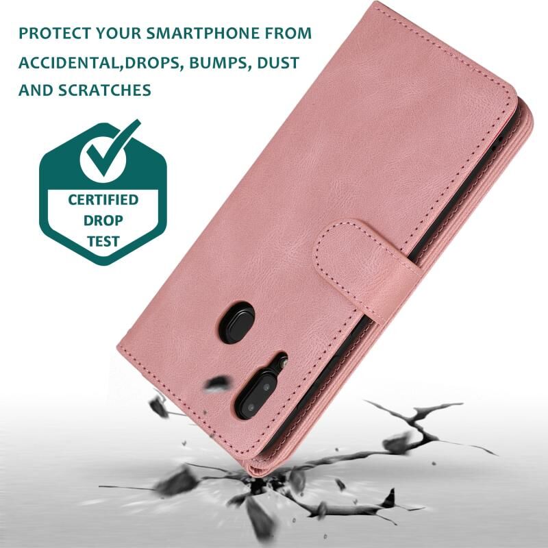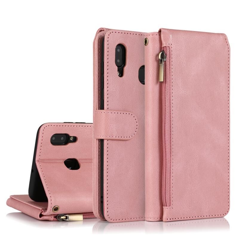 Για Samsung Galaxy A20 / A30 Skin-feel Crazy Horse υφή φερμουάρ τσάντα πορτοφόλι οριζόντια Flip δερμάτινη θήκη με κάτοχο & υποδοχές για κάρτες & πορτοφόλι & Lanyard (Rose Gold)