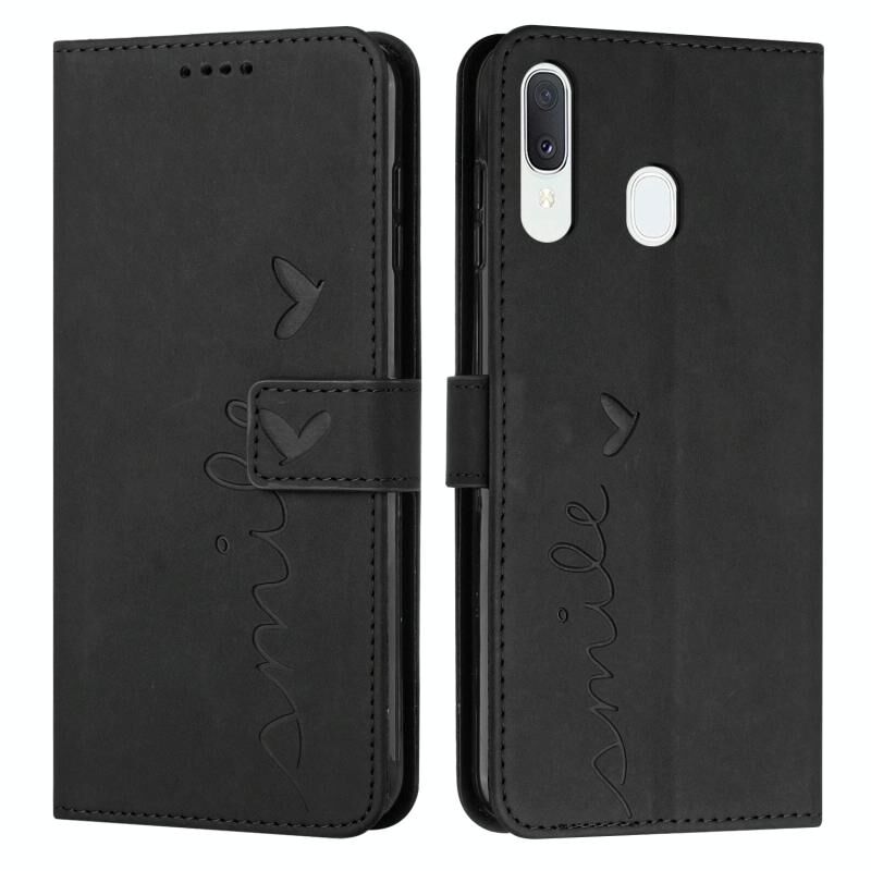 Για Samsung Galaxy A20/A30 δέρμα αίσθηση καρδιά μοτίβο δερμάτινη θήκη τηλεφώνου (μαύρο)