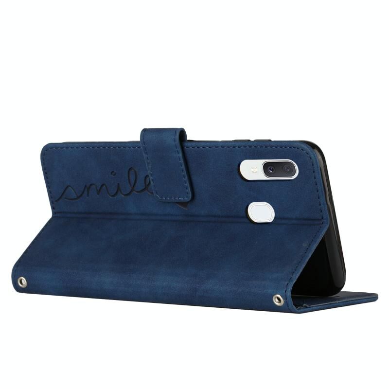 Για Samsung Galaxy A20/A30 δέρμα αίσθηση καρδιά μοτίβο δερμάτινη θήκη τηλεφώνου (μπλε)