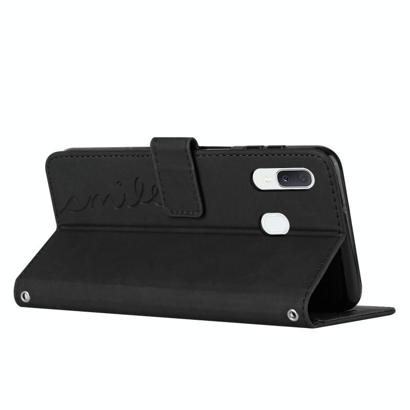 Για Samsung Galaxy A20/A30 δέρμα αίσθηση καρδιά μοτίβο δερμάτινη θήκη τηλεφώνου με κορδόνι (Μαύρο)