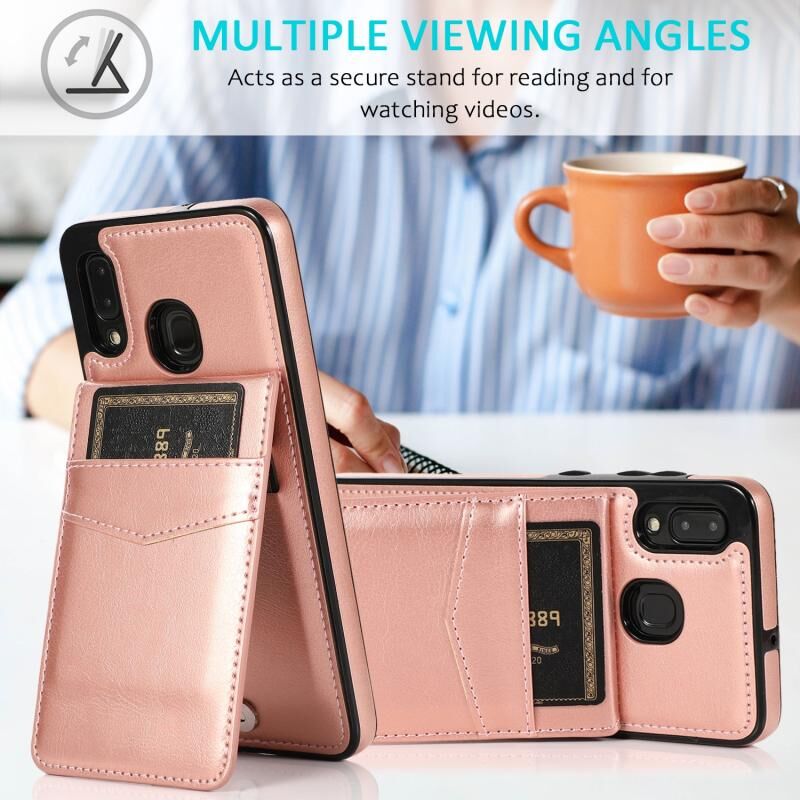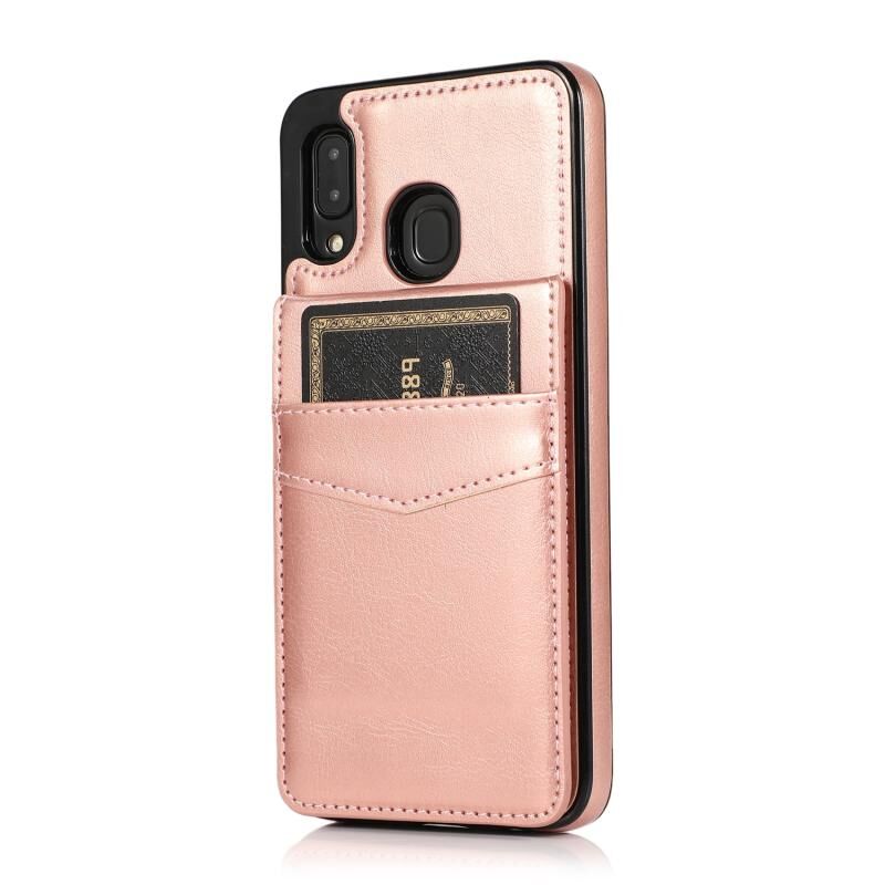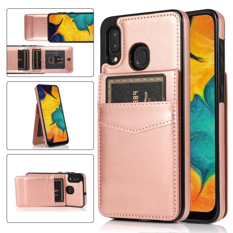 Για Samsung Galaxy A20 / A30 Αμιγές χρώμα PC + TPU προστατευτική θήκη με θήκη & υποδοχές για κάρτες (ροζ χρυσό)