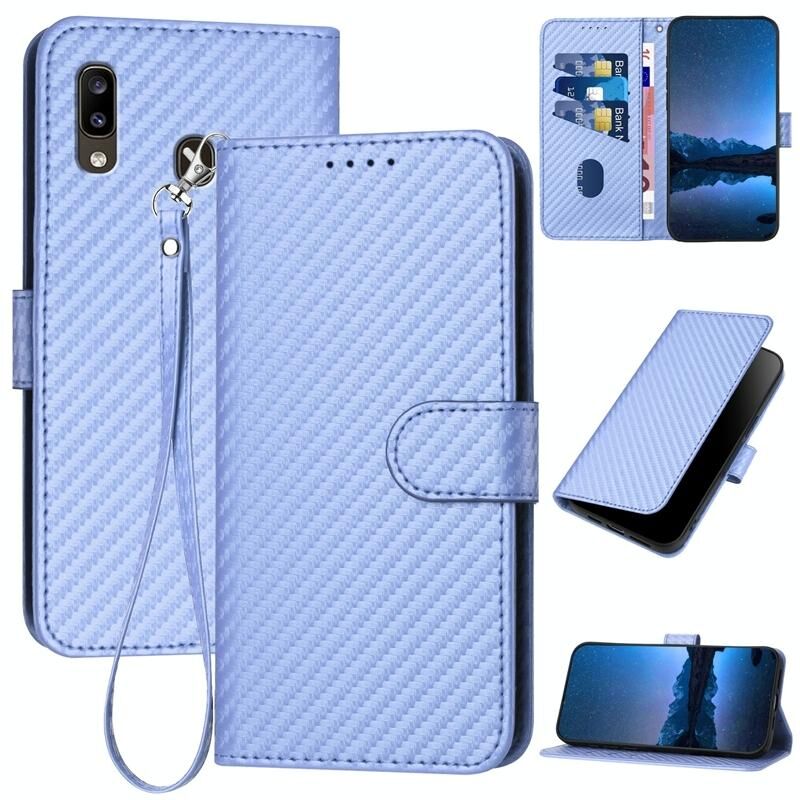 Για Samsung Galaxy A20 / A30 YX0070 Carbon Fiber πόρπη δερμάτινη θήκη τηλεφώνου με κορδόνι (ανοιχτό μοβ)