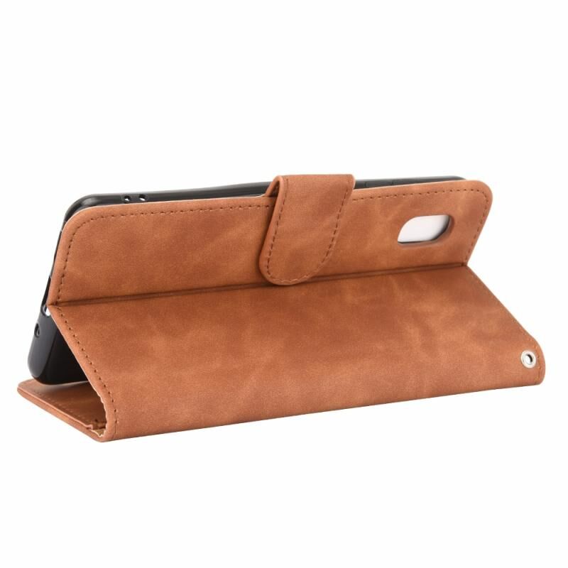 Για το Samsung Galaxy A20 (ιαπωνική έκδοση) Αμιγές χρώμα δέρμα αίσθηση μαγνητική πόρπη οριζόντια Flip μοσχάρι υφή PU δέρμα υπόθεση με κάτοχο & υποδοχές για κάρτες & πορτοφόλι (Καφέ)