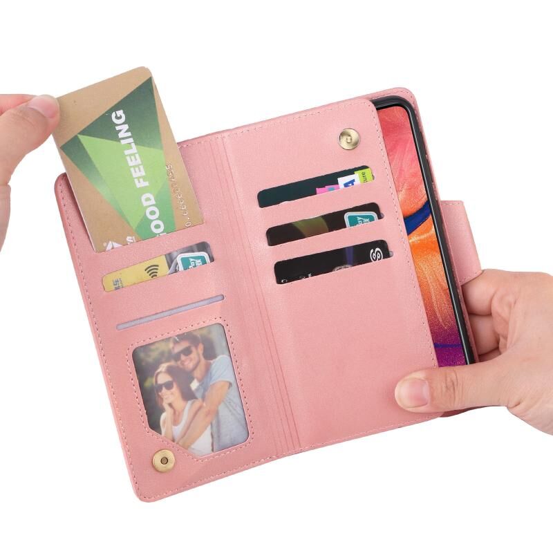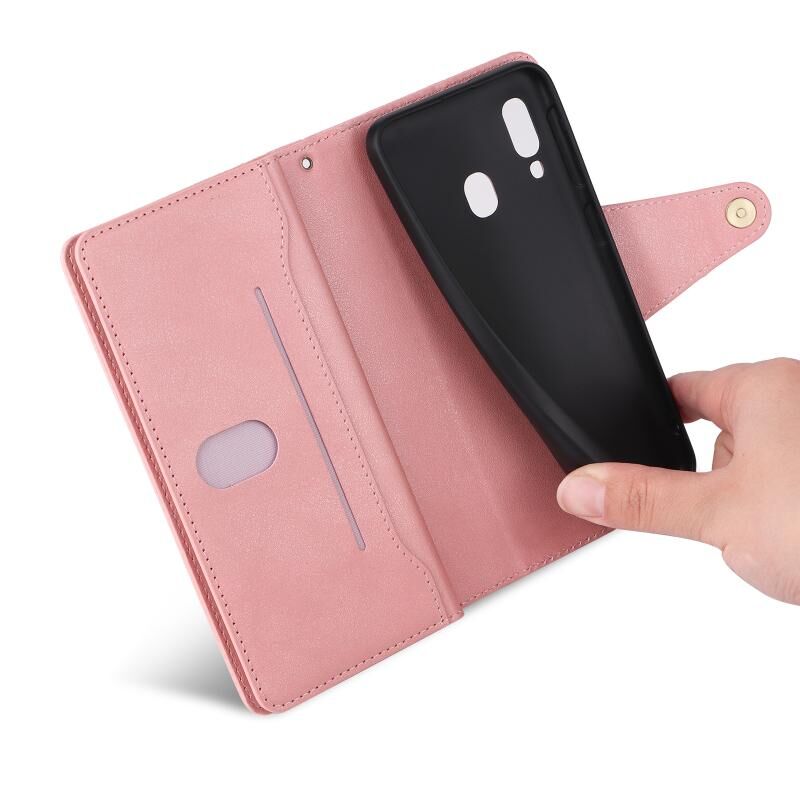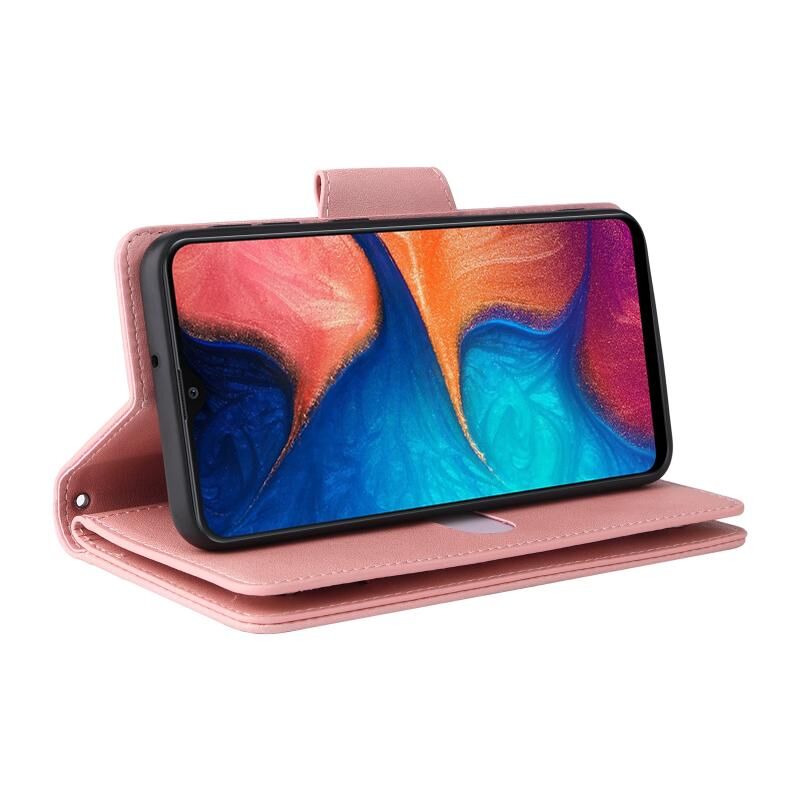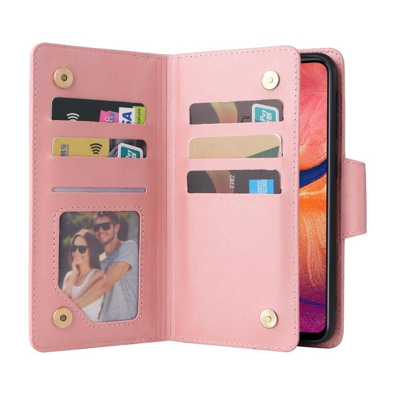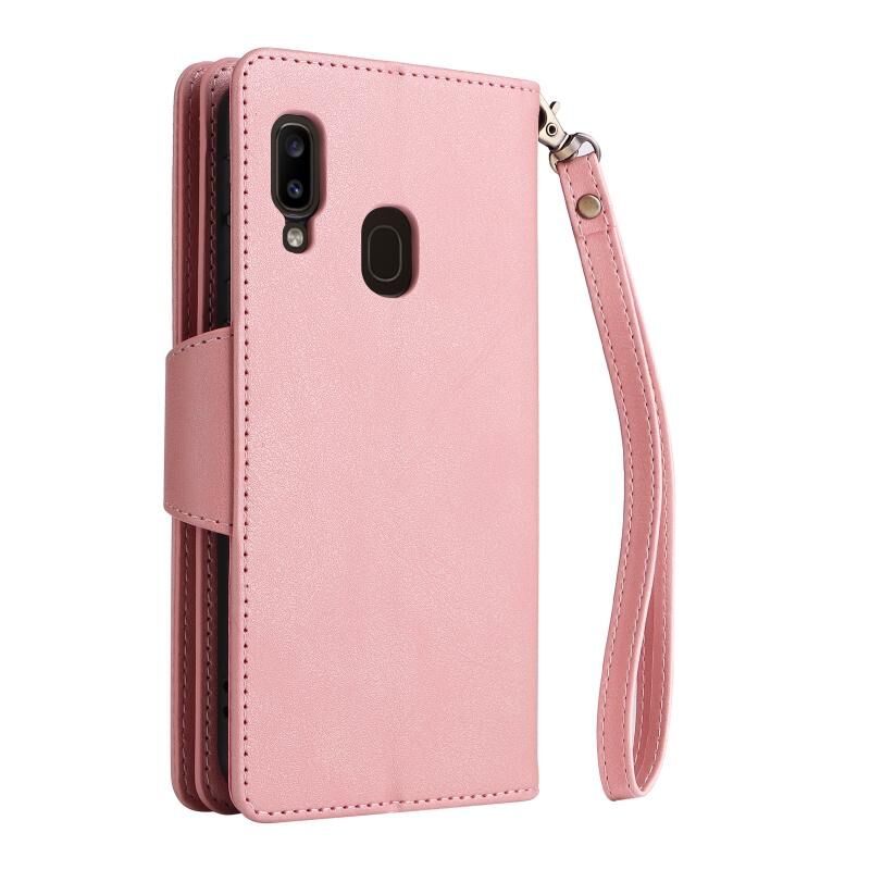 Για Samsung Galaxy A20 Rivet πόρπη 9 κάρτες τρεις φορές δερμάτινη θήκη τηλεφώνου (Rose Gold)