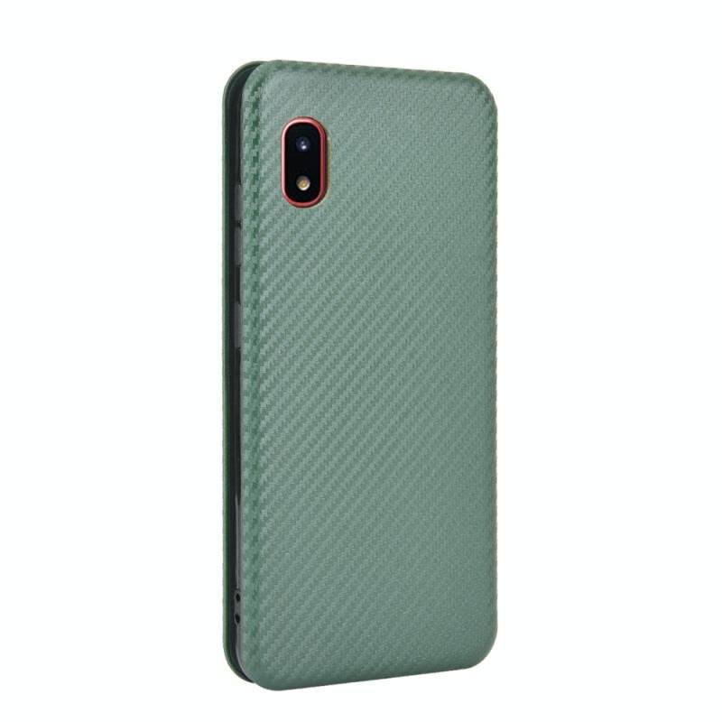 Για το Samsung Galaxy A20 (SC-02M) SCV46 Carbon Fiber Texture Horizontal Flip TPU + PC + PU Leather Case με σχοινί & υποδοχή κάρτας (πράσινο)