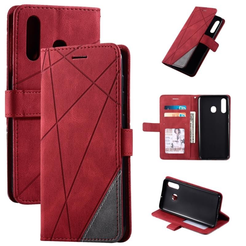 Για το Samsung Galaxy A20 Skin Feel Splicing οριζόντια Flip δερμάτινη θήκη με θήκη & υποδοχές για κάρτες & πορτοφόλι & κορνίζα φωτογραφιών (κόκκινο)