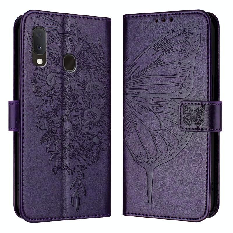 Για Samsung Galaxy A20e / A10e ανάγλυφη πεταλούδα δερμάτινη θήκη τηλεφώνου (σκούρο μοβ)