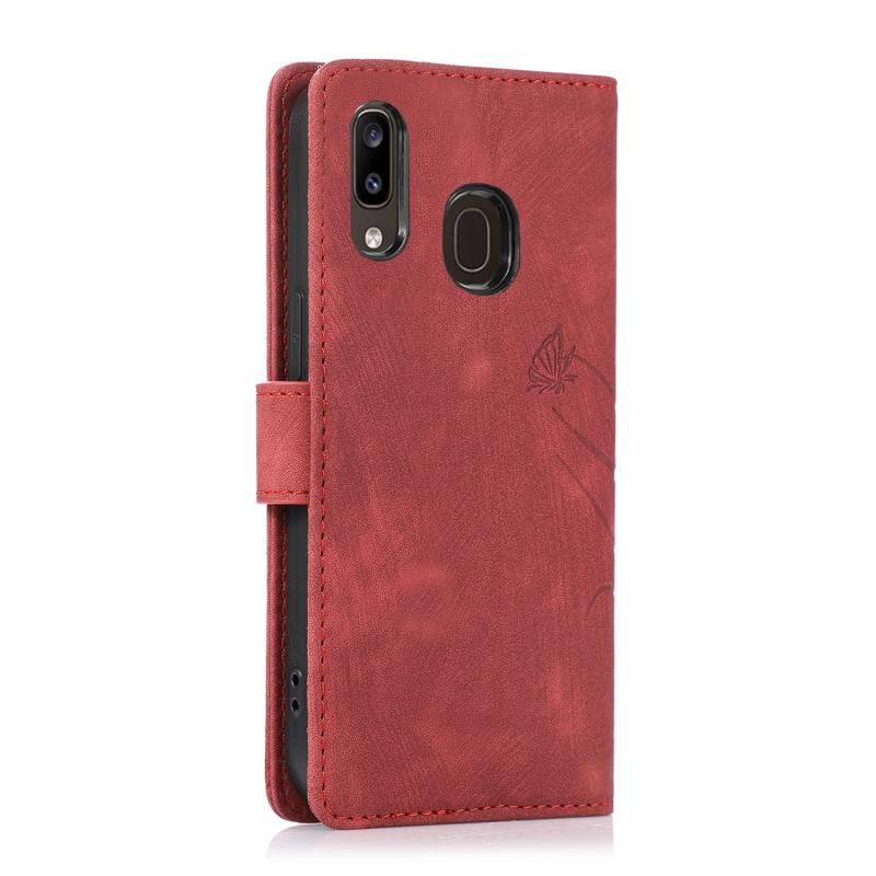 Θήκη τηλεφώνου δερμάτινη ανάγλυφη με σχέδιο ορχιδέας πεταλούδας για Samsung Galaxy A20e / A10e (Κόκκινο)