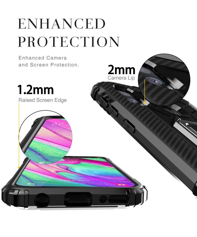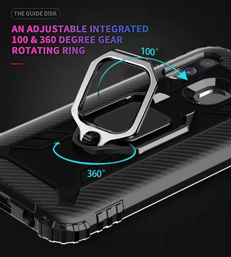 Για Samsung Galaxy A20e Carbon Fiber Προστατευτική θήκη με 360 μοίρες περιστρεφόμενη θήκη δακτυλίου (Μαύρο)