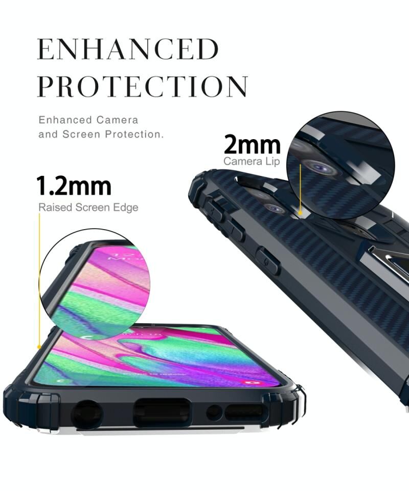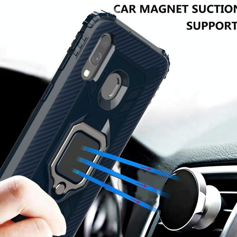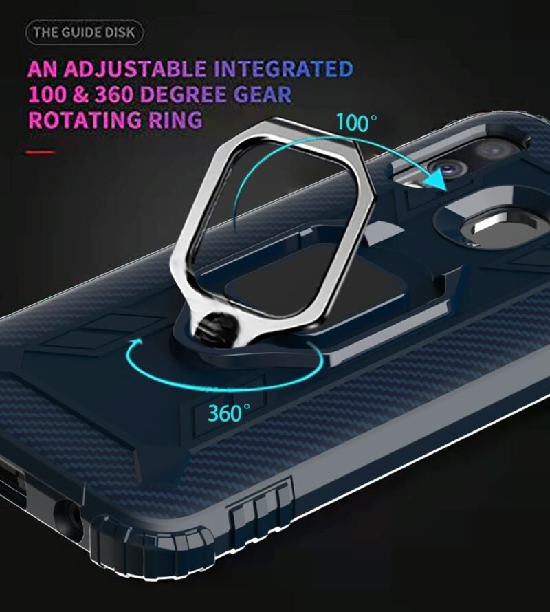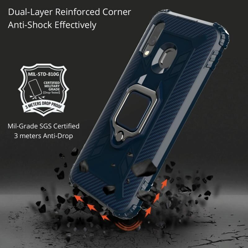 Για Samsung Galaxy A20e Carbon Fiber Προστατευτική θήκη με 360 μοίρες περιστρεφόμενη θήκη δακτυλίου (μπλε)