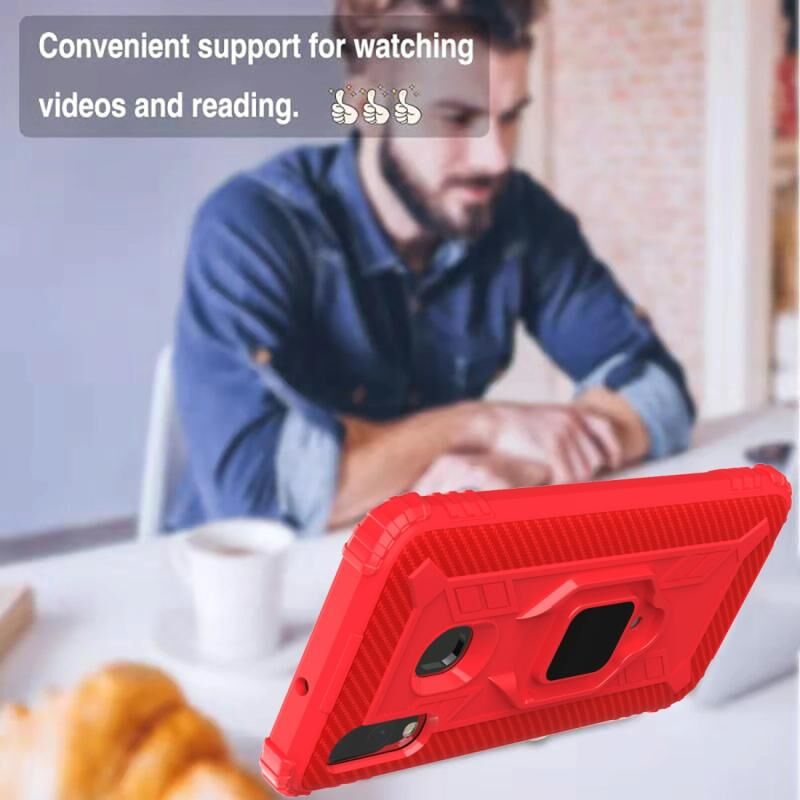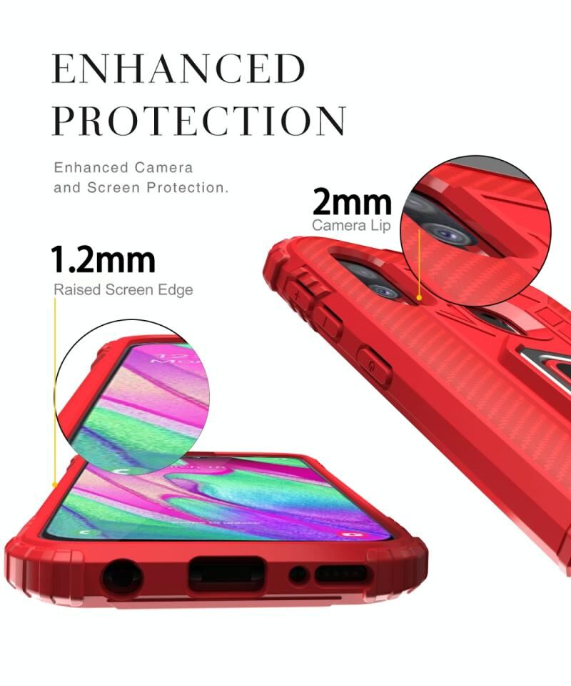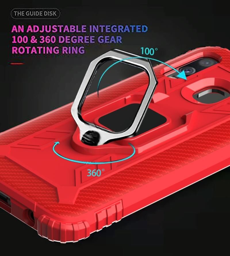 Για Samsung Galaxy A20e Carbon Fiber Προστατευτική θήκη με 360 μοίρες περιστρεφόμενη θήκη δακτυλίου (κόκκινο)