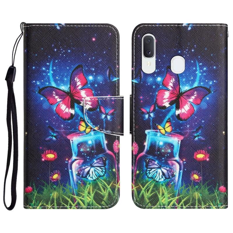Θήκη τηλεφώνου Samsung Galaxy A20e από δέρμα με έγχρωμο σχέδιο (Μπουκάλι Πεταλούδα)