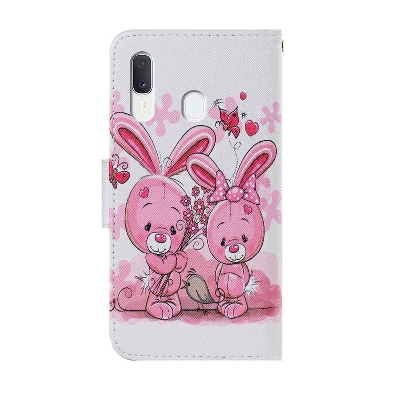 Θήκη Samsung Galaxy A20e με πολύχρωμο σχέδιο, οριζόντια αναδιπλούμενη από δερματίνη PU με βάση στήριξης, θήκες για κάρτες, πορτοφόλι & λουρί (Χαριτωτό Κουνελάκι)