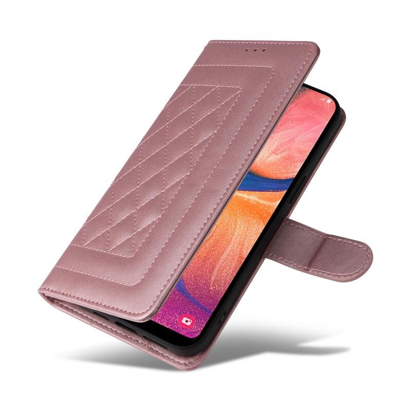 Για Samsung Galaxy A20e Diamond Lattice δέρμα Flip υπόθεση τηλεφώνου (Rose Gold)