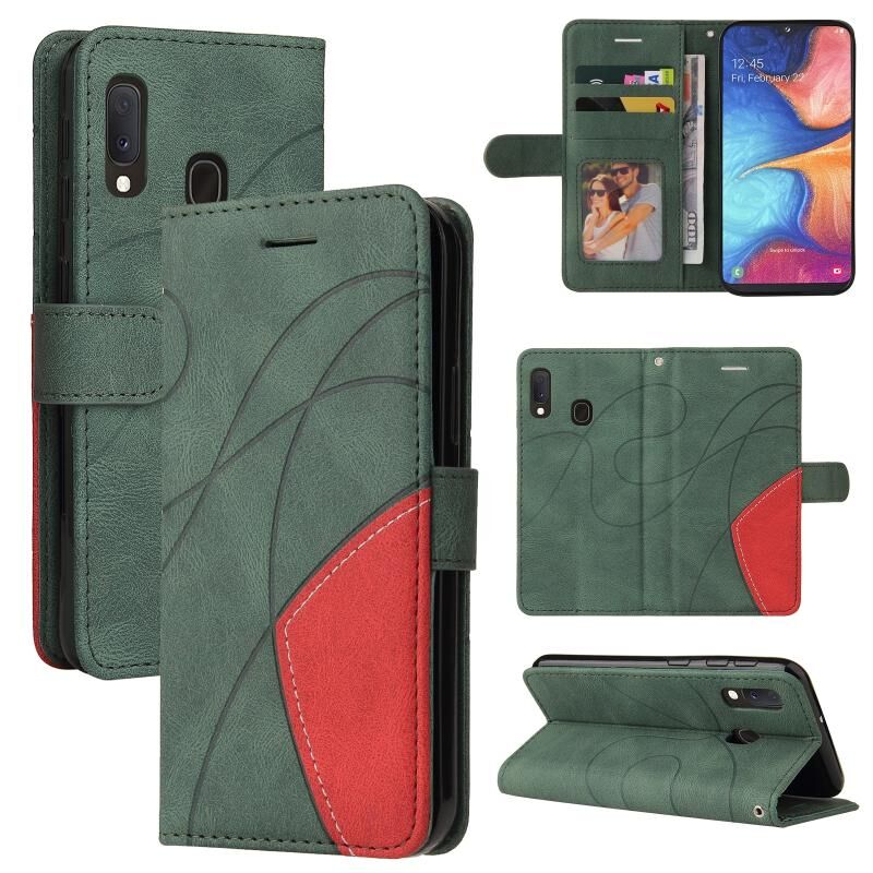 Για Samsung Galaxy A20e Διπλό χρώμα Splicing οριζόντια Flip PU δέρμα υπόθεση με θήκη & υποδοχές για κάρτες & πορτοφόλι (πράσινο)
