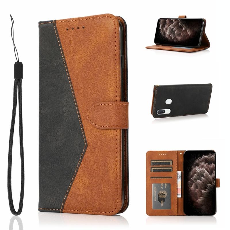 Θήκη τηλεφώνου Samsung Galaxy A20e από δέρμα με ραφές σε δύο χρώματα (Καφέ Κόκκινο)