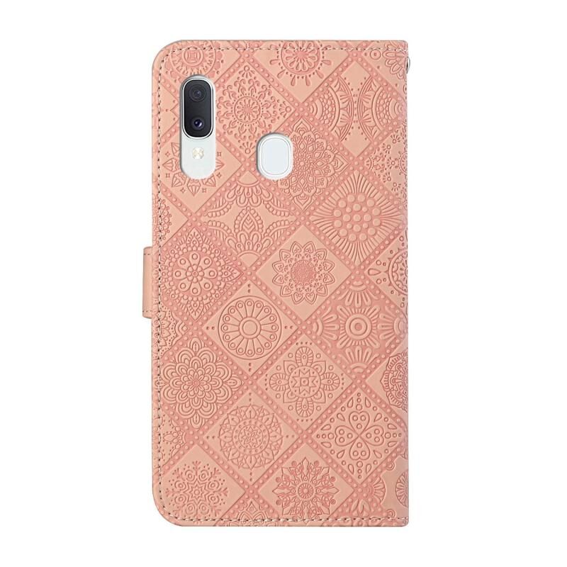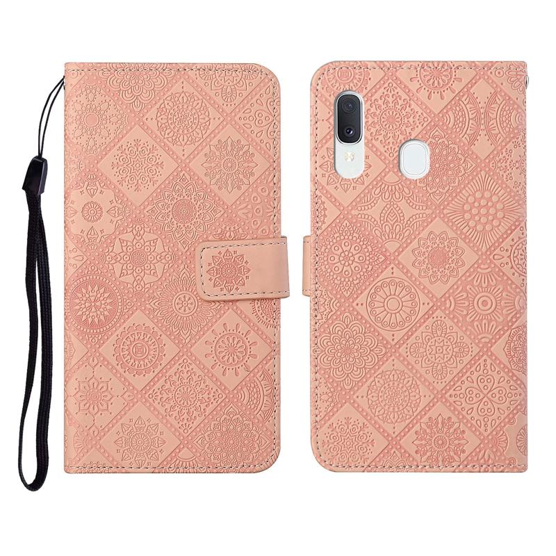 For Samsung Galaxy A20e Ethnic Style Embossed Pattern Horizontal Flip Leather Case with Holder & Card Slots & Wallet & Lanyard(Pink)
