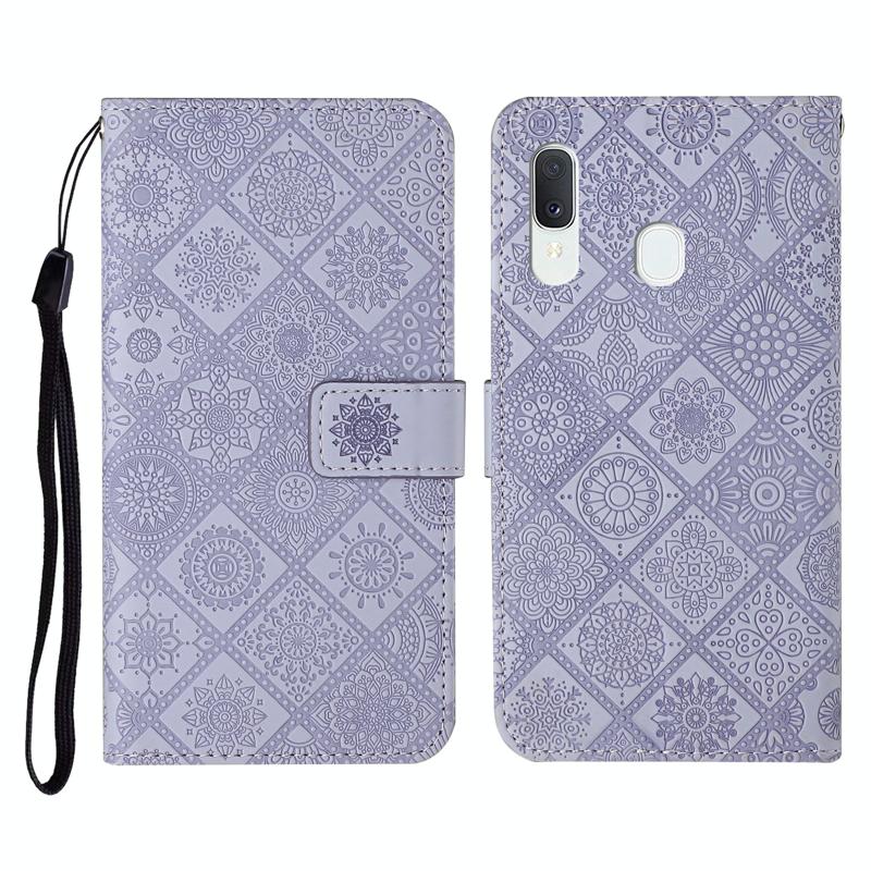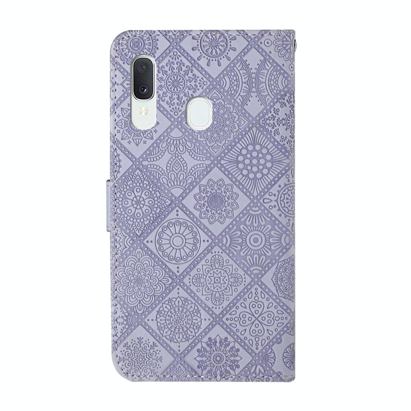 For Samsung Galaxy A20e Ethnic Style Embossed Pattern Horizontal Flip Leather Case with Holder & Card Slots & Wallet & Lanyard(Purple)