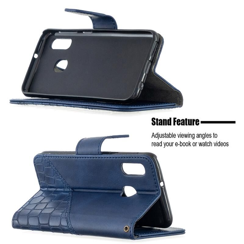 Θήκη Samsung Galaxy A20e, Οριζόντια, Δερμάτινη PU με Υφή Κροκόδειλου, σε Αντίστοιχο Χρώμα, με Θήκη Πορτοφολιού, Κάτοχο & Θήκες Καρτών (Μαύρο)