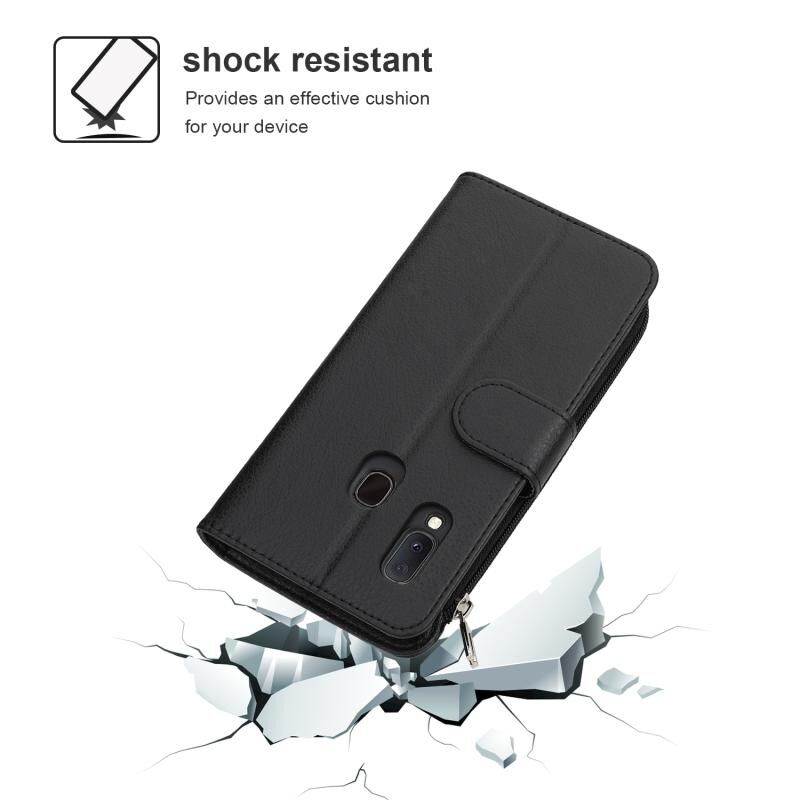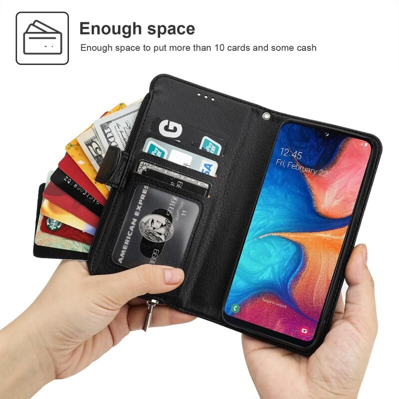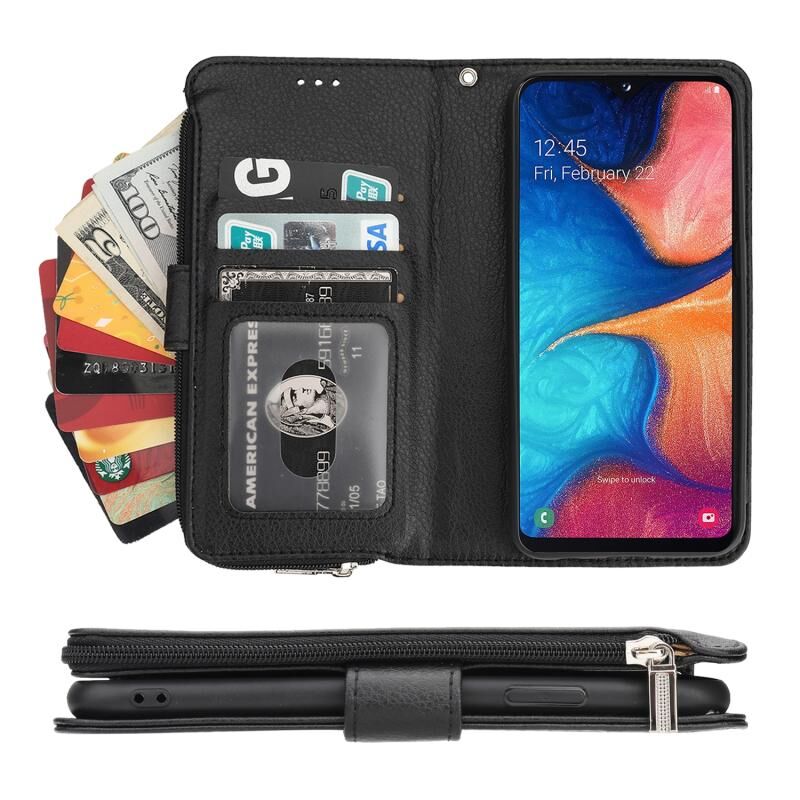 Για Samsung Galaxy A20e Microfiber φερμουάρ οριζόντια Flip δερμάτινη θήκη (Μαύρο)