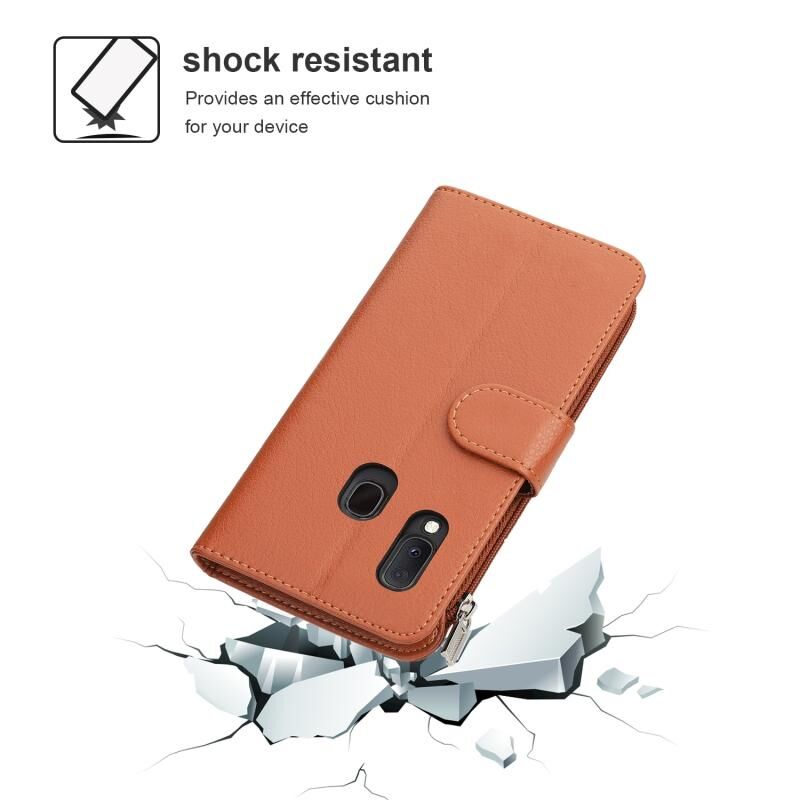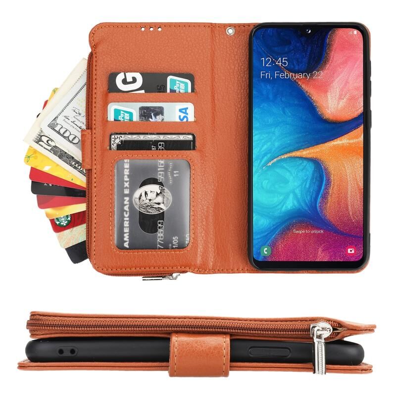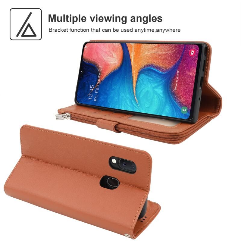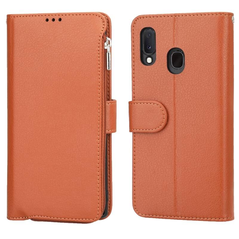 Για Samsung Galaxy A20e Microfiber φερμουάρ οριζόντια Flip δερμάτινη θήκη (καφέ)
