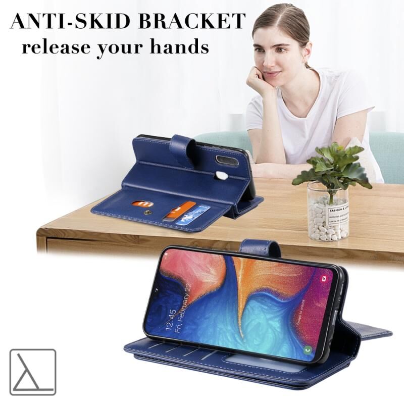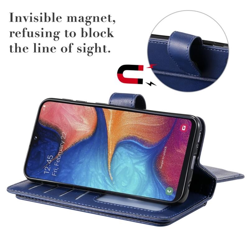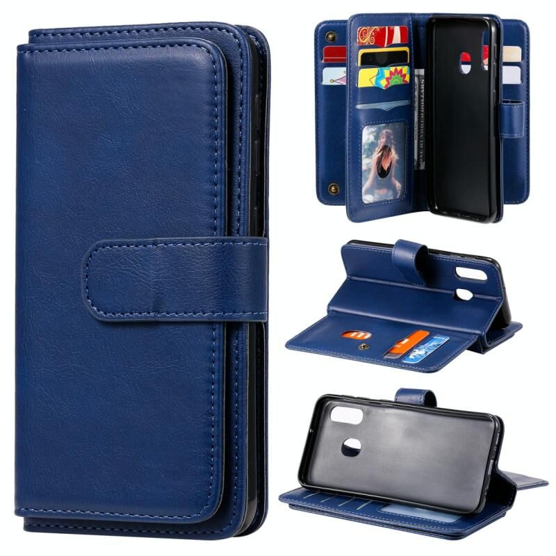 Για Samsung Galaxy A20e Πολυλειτουργική μαγνητική χάλκινη πόρπη οριζόντια Flip αμιγές χρώμα δερμάτινη θήκη με 10 υποδοχές για κάρτες & πορτοφόλι & θήκη & κορνίζα φωτογραφιών (σκούρο μπλε)