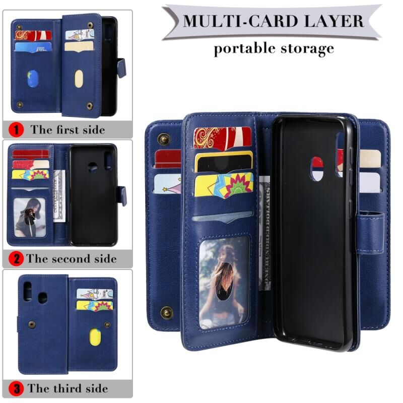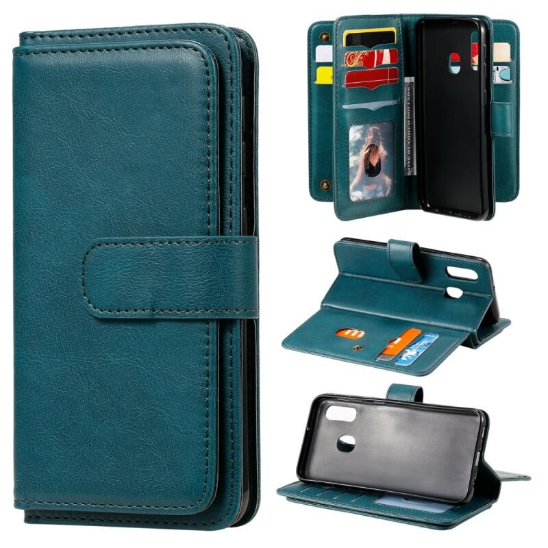 Για Samsung Galaxy A20e Πολυλειτουργική μαγνητική χάλκινη πόρπη οριζόντια Flip αμιγές χρώμα δερμάτινη θήκη με 10 υποδοχές για κάρτες & πορτοφόλι & κάτοχος & κορνίζα φωτογραφιών (σκούρο πράσινο)