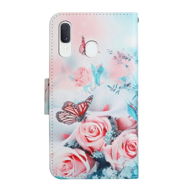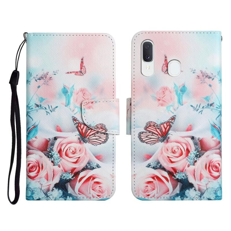 Θήκη Samsung Galaxy A20e από Δέρμα με Οριζόντιο Άνοιγμα, Βαμμένο Μοτίβο, με Θήκη & Υποδοχή Κάρτας & Πορτοφόλι (Παιώνια Πεταλούδα)