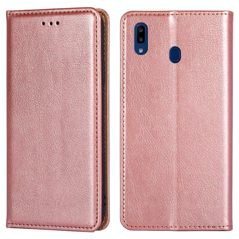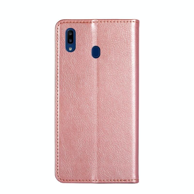 Για Samsung Galaxy A20e PU + TPU γυαλιστερό λάδι στερεό χρώμα μαγνητική οριζόντια Flip δερμάτινη θήκη με υποδοχή & υποδοχή για κάρτες & πορτοφόλι (ροζ χρυσό)
