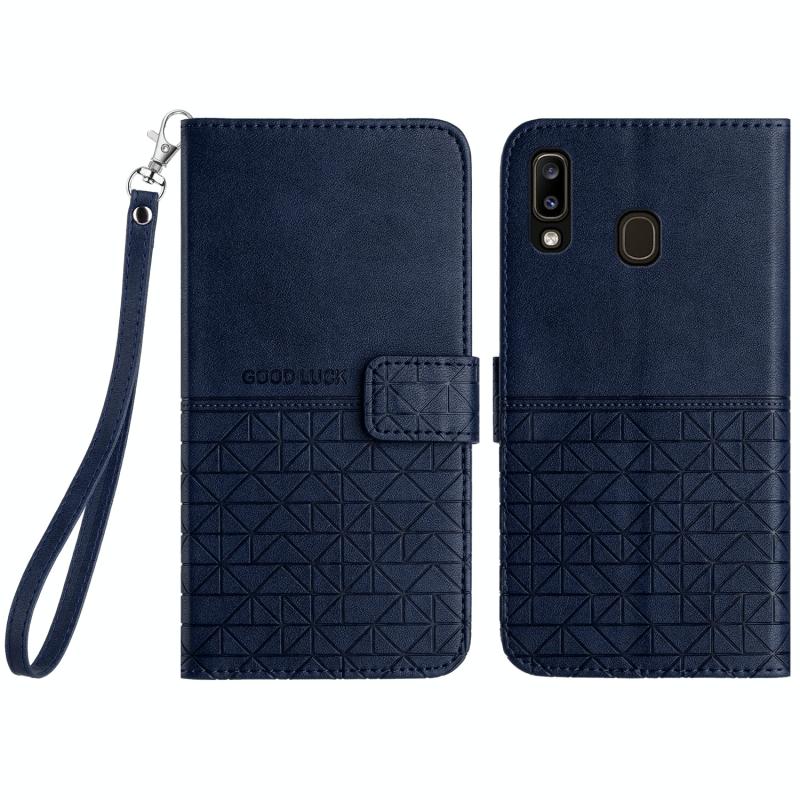 For Samsung Galaxy A20e Rhombic Texture Leather Phone Case with Lanyard(Blue)