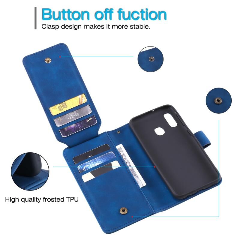Για Samsung Galaxy A20e Skin Feel Business Οριζόντια Flip PU δέρμα υπόθεση με θήκη & υποδοχές πολλαπλών καρτών & πορτοφόλι & κορδόνι & κορνίζα & πλαίσιο φωτογραφιών (μπλε)