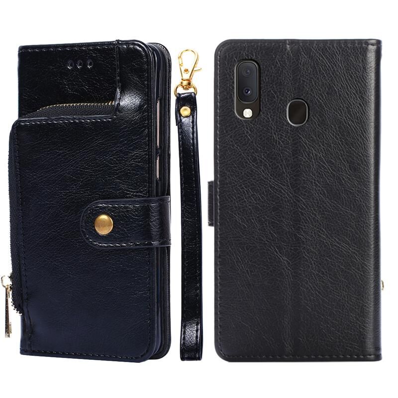 Για Samsung Galaxy A20e φερμουάρ τσάντα PU + TPU οριζόντια Flip δερμάτινη θήκη με θήκη & υποδοχή για κάρτες & πορτοφόλι & κορδόνι (Μαύρο)