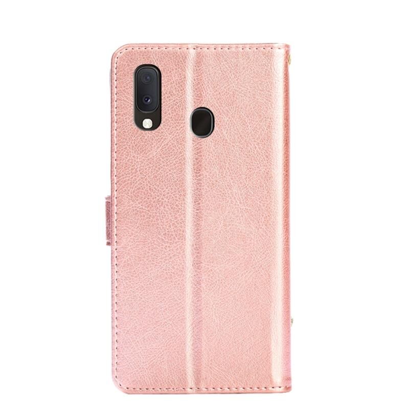 Για Samsung Galaxy A20e φερμουάρ τσάντα PU + TPU οριζόντια Flip δερμάτινη θήκη με θήκη & υποδοχή για κάρτες & πορτοφόλι & κορδόνι (Rose Gold)