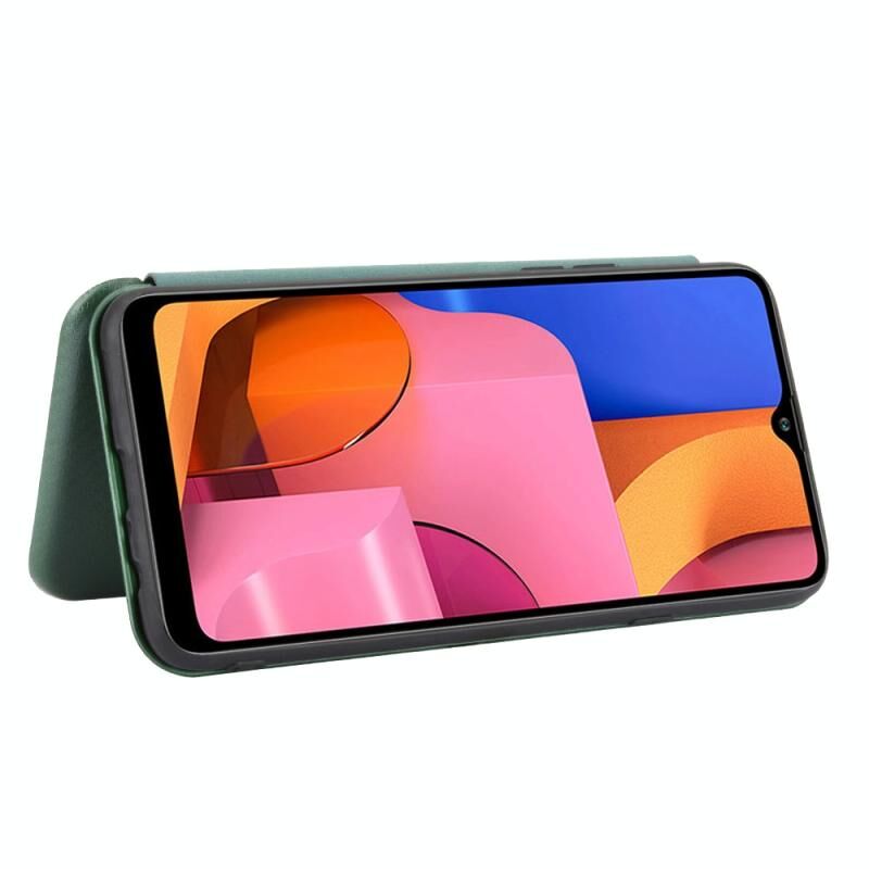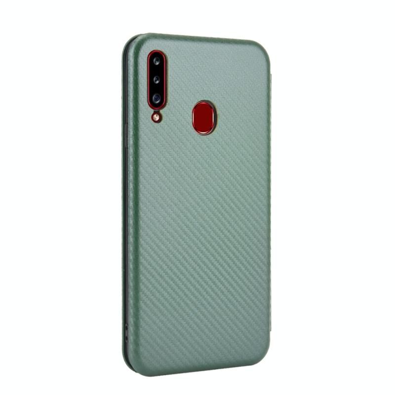 Για Samsung Galaxy A20s Carbon Fiber υφή οριζόντια Flip TPU + PC + PU δέρμα υπόθεση με σχοινί & υποδοχή κάρτας (πράσινο)
