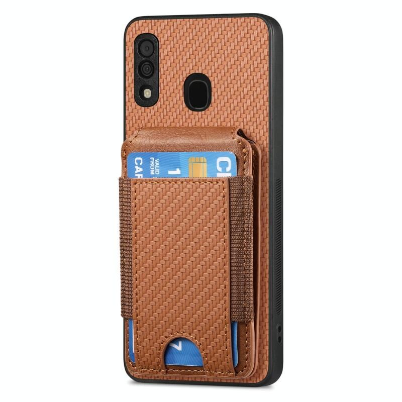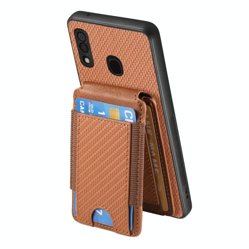 Για Samsung Galaxy A20s Carbon Fiber Κάθετη Flip Wallet Stand υπόθεση τηλεφώνου (καφέ)