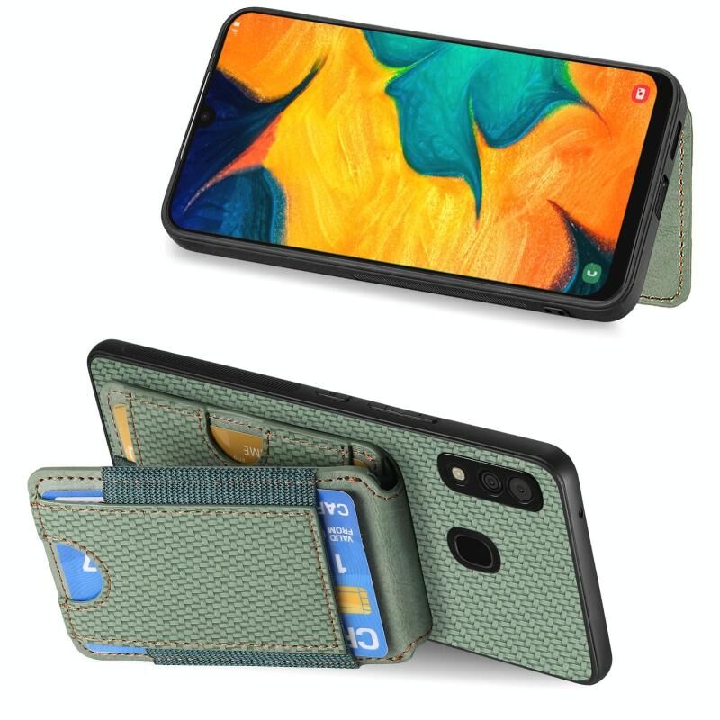Για Samsung Galaxy A20s Carbon Fiber Κάθετη Flip Wallet Stand υπόθεση τηλεφώνου (πράσινο)