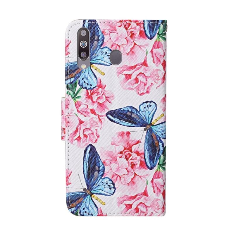 Θήκη δέρματος οριζόντιας αναδίπλωσης με σχέδιο πολύχρωμης ζωγραφικής για Samsung Galaxy A20s με βάση & υποδοχές καρτών & πορτοφόλι (Πεταλούδα και Λουλούδια)