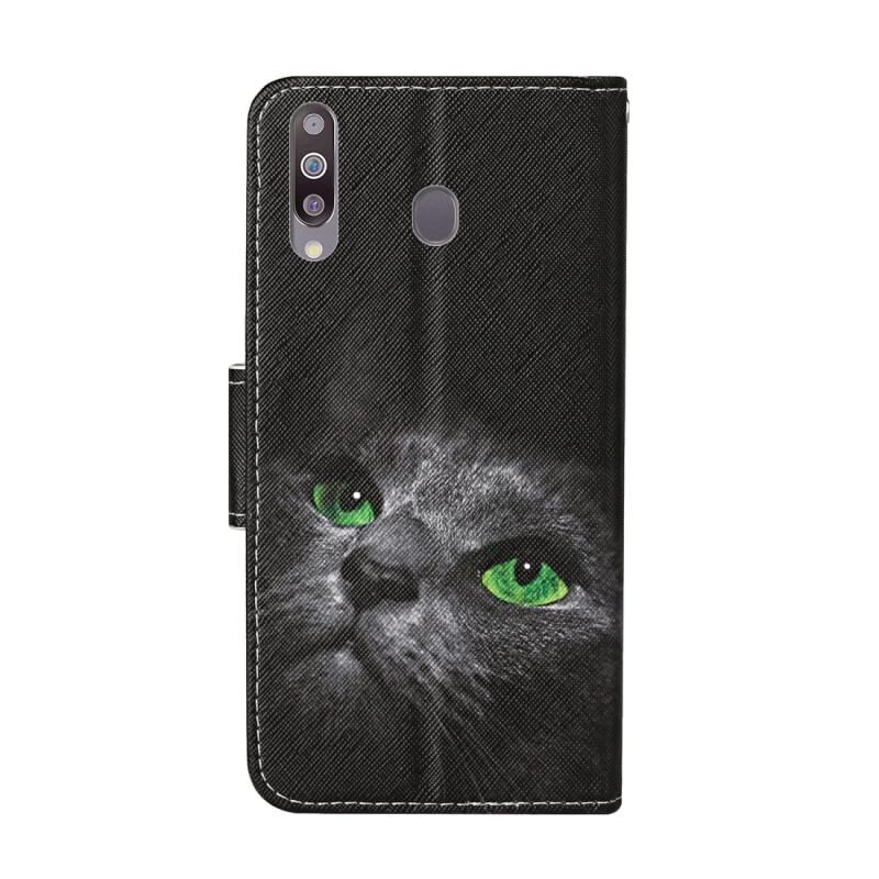 Θήκη δέρματος οριζόντιας αναδίπλωσης με σχέδιο πολύχρωμης ζωγραφικής για Samsung Galaxy A20s με βάση & υποδοχές καρτών & πορτοφόλι (Σχέδιο Γάτας)