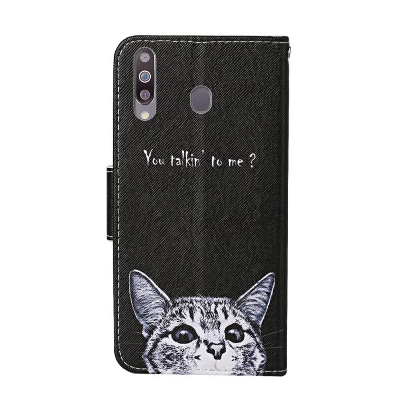 Θήκη δέρματος οριζόντιας αναδίπλωσης με σχέδιο πολύχρωμης ζωγραφικής για Samsung Galaxy A20s με βάση & υποδοχές καρτών & πορτοφόλι (Γάτα)