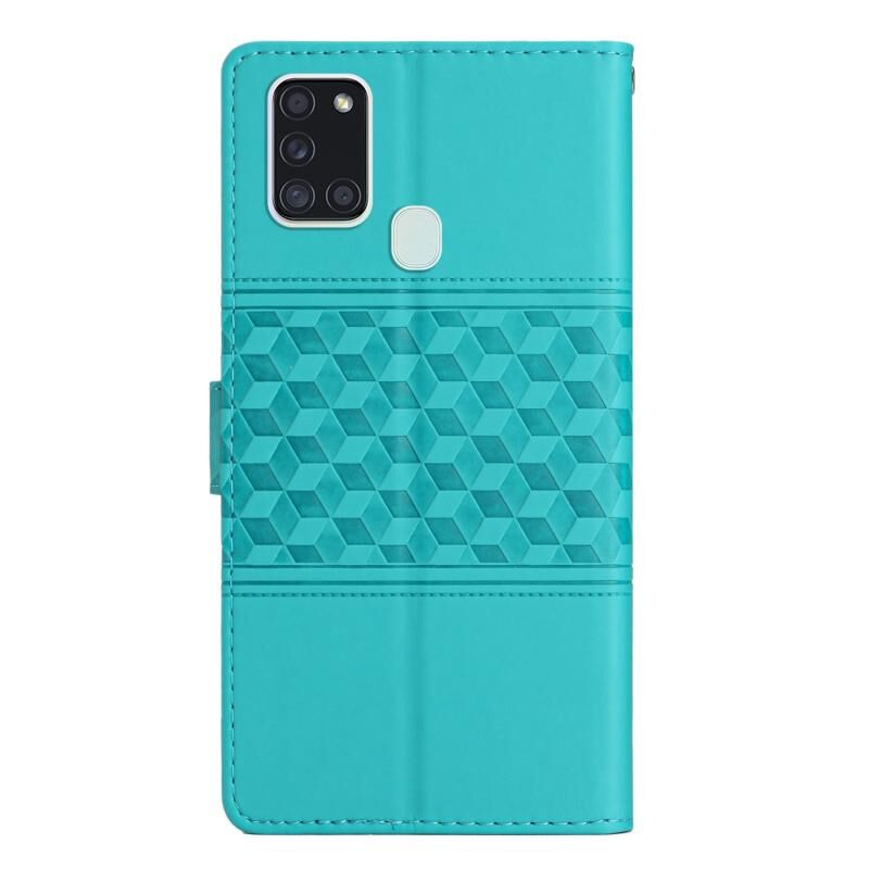 Για Samsung Galaxy A20S Diamond ανάγλυφο δέρμα αίσθηση δέρμα υπόθεση τηλεφώνου με κορδόνι (μπλε)