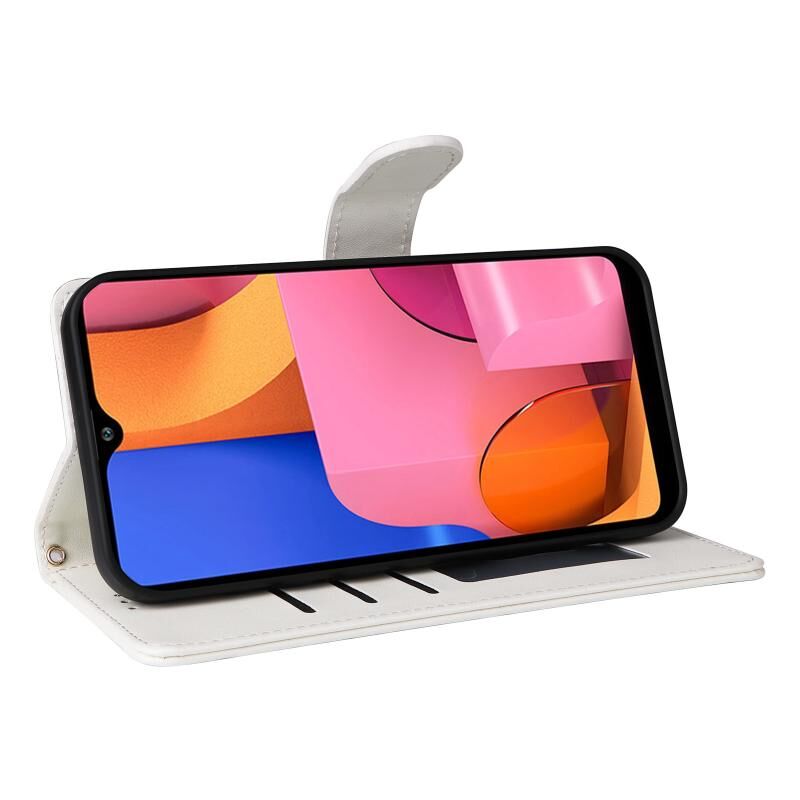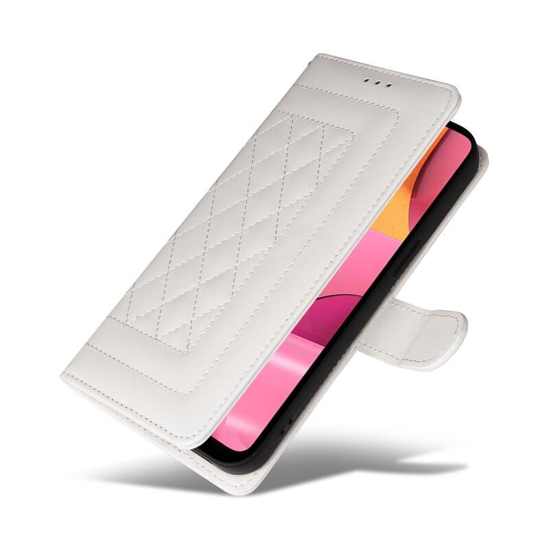 Για Samsung Galaxy A20s Diamond Lattice δέρμα Flip υπόθεση τηλεφώνου (λευκό)